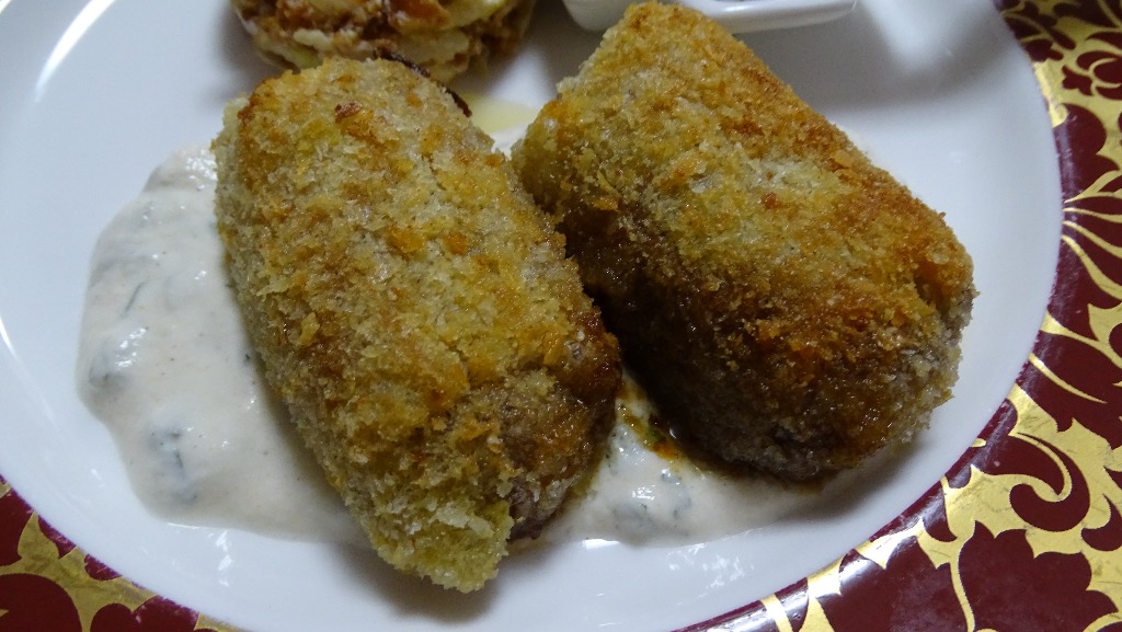 オイスターソース炒めも柔らかい具ですが、ライスペーパーで包んでからパン粉付けしてるので