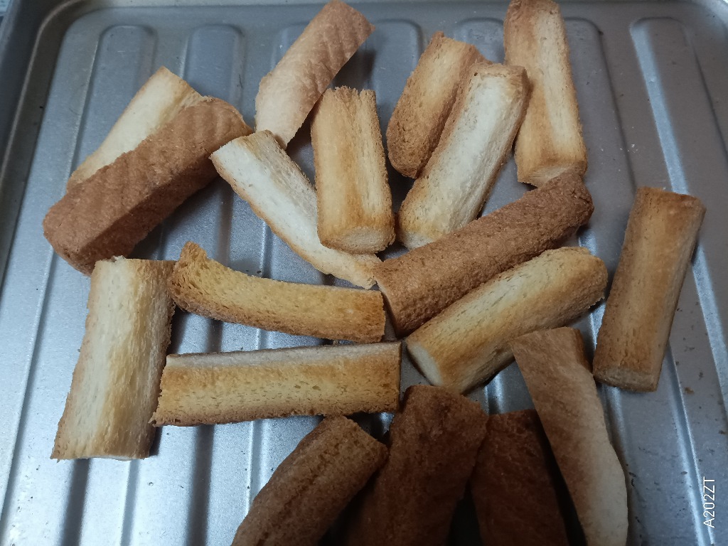 スティックsizeのパンミミを、フライパンで・・・・・乾煎り!!