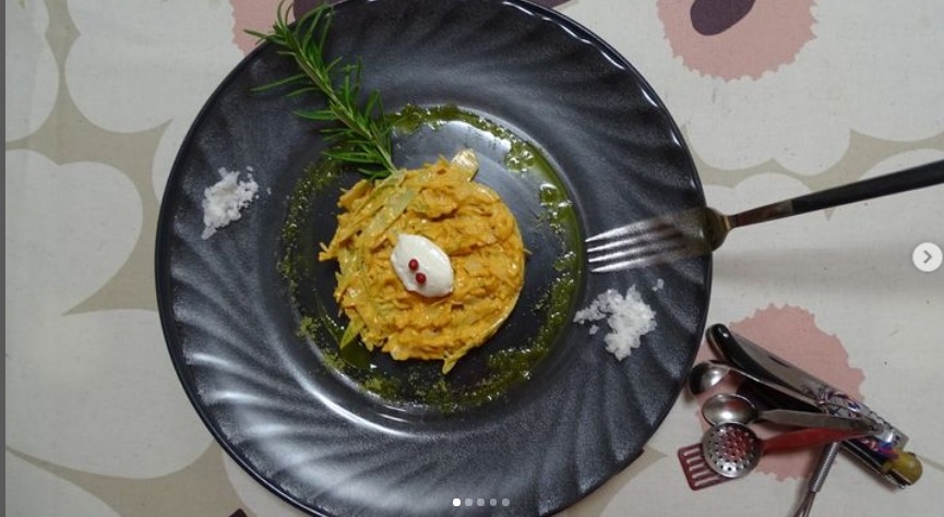 自家製のクリチとピンクペッパー、rosemaryオイルを周りに・・・・