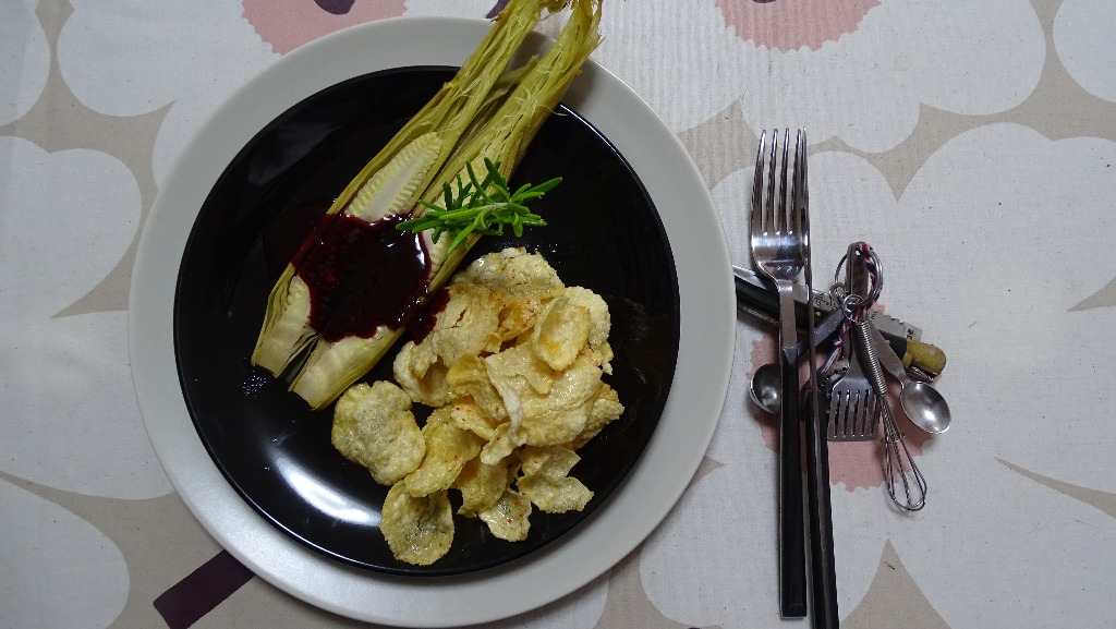 で・・・・ひげは、天ぷらの衣にクミンパウダー入れて絡めて、オリーブオイルでソテーしました。