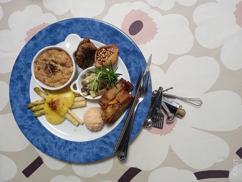 アスパラは・・・・ほんま甘いです。hollandaiseと組み合わせた、昔の人は天才的だと思います。グラタンにグラハム粉・・・・通常ベシャメルは、裏ごし掛けて滑らかにするんですが、ワザとクラハム粉の食感を楽しむ作戦、ベーコンの香りとで・・・・にやけ倒す作戦!!