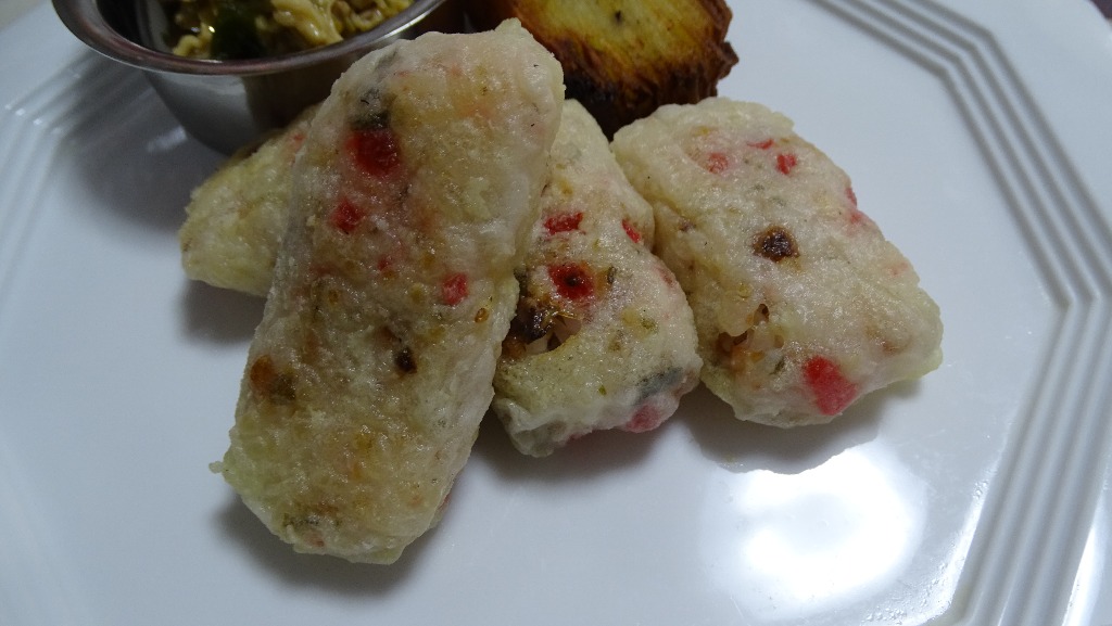 白玉粉と海苔、梅肉で作るつた自家製煎餅をフリットしました。