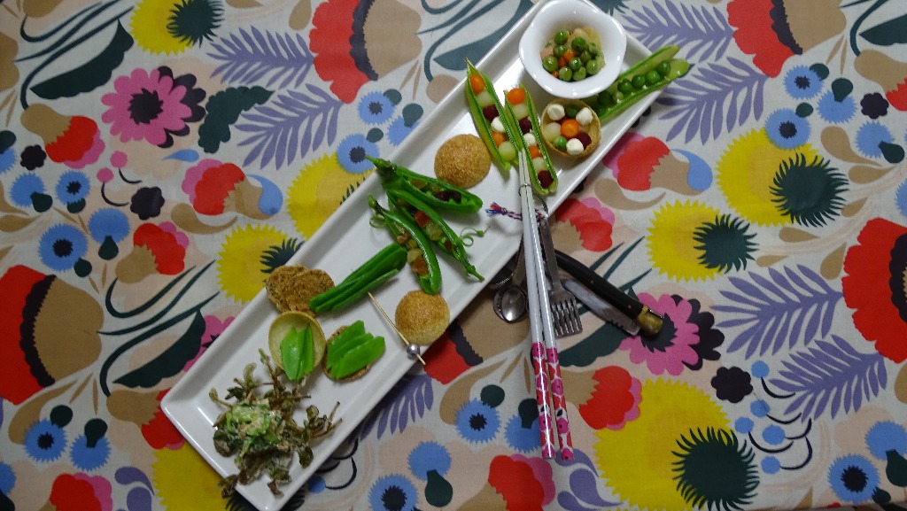 歯ごたえが良いので、塩茹でのまんま、自家製煎餅のカナッペとパニプリと串刺し!!