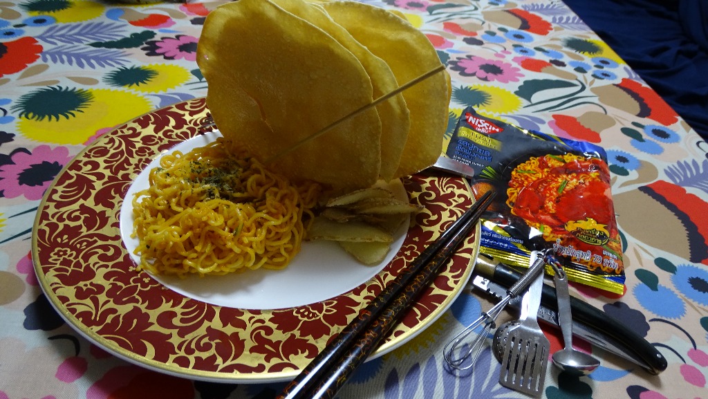 いくら何でも、これだけで食べるのは・・・・美食魂が許さないので、パパドを添えることに・・・