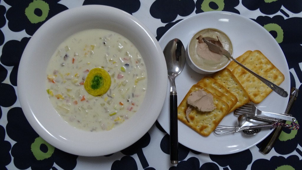 今回は、クラッカーとレバーペースト添えてます。