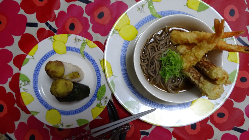 おにぎりの添えは・・・・・天ぷら蕎麦!!