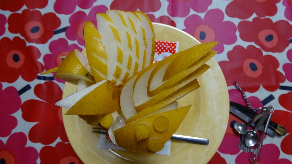 本日は、でかい豊水という梨をまんま1ケ 使って盛り付けてみました!!