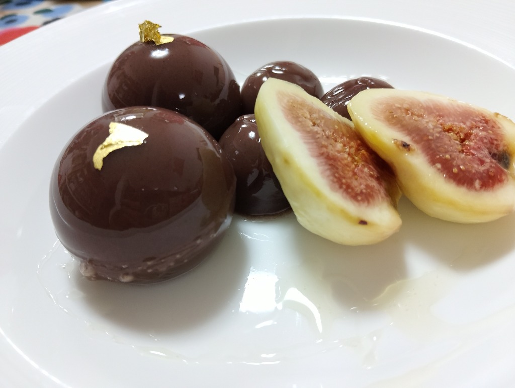 そこに・・・・金箔、無花果添えて・・・・「透明キャラメルソース」を・・・