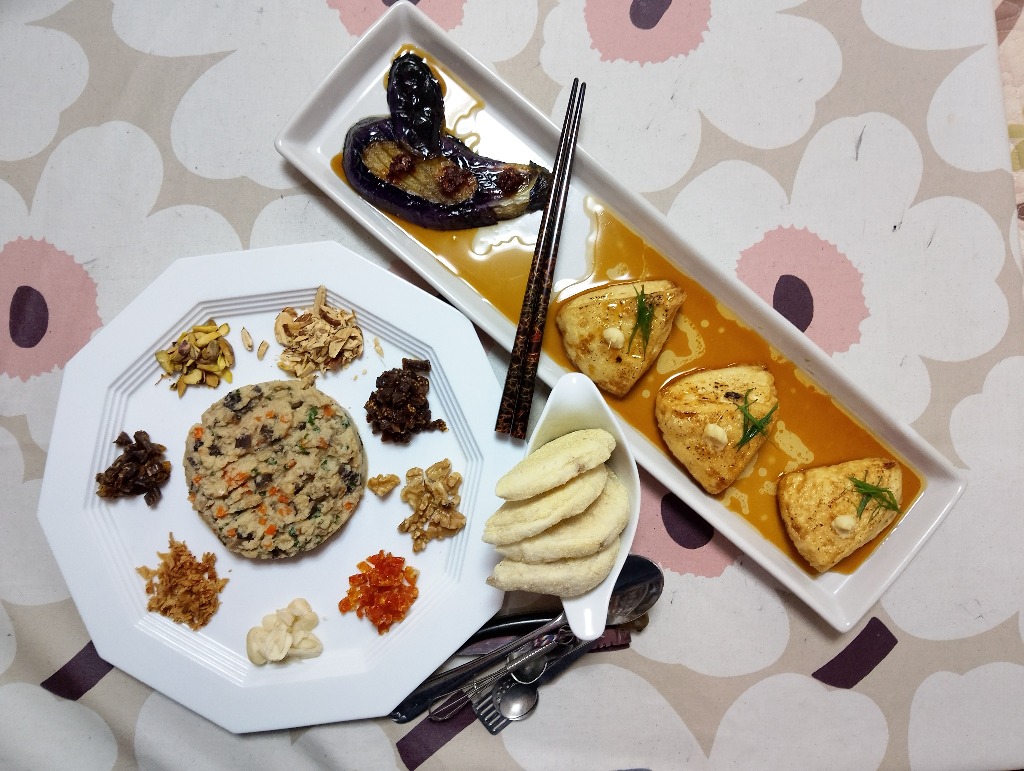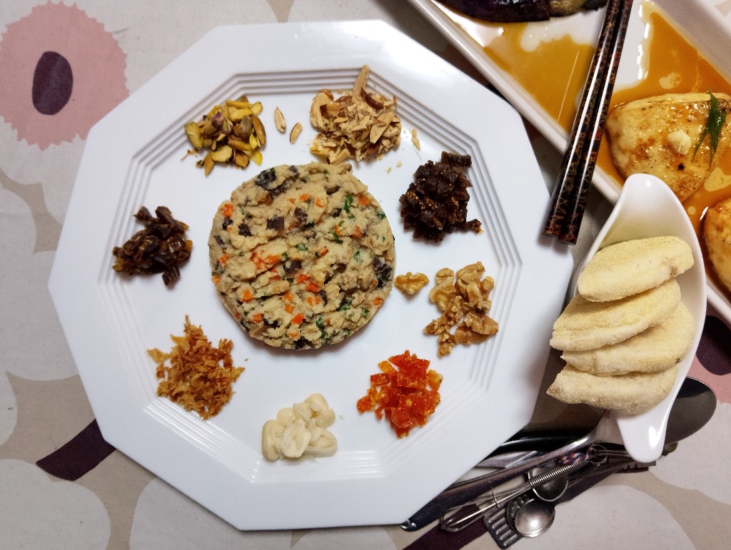 その2卯の花 a la mode もちパパstyleかっこつけてますが・・・ドストライクの和の味付けのおから炒り煮です。本当は、おからのフムス作る積りでしたが、とりあえず・・・卯の花が食べたくなったので・・・WWW周りのは、味変用です。アーモンド、ピスタチオ、ヘーゼルナッツ、クルミ、デーツ、ドライトマトライ無花果、オニオンクリスピーPanは、イングリッシュマフィン添えてます。